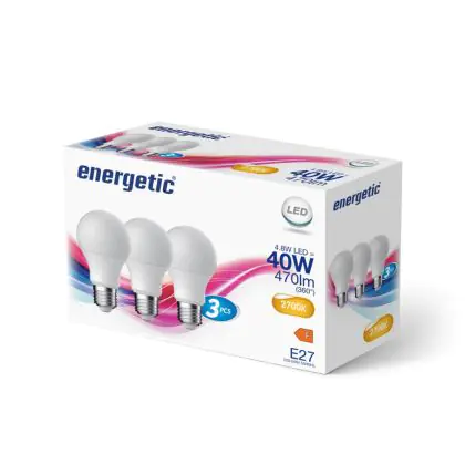 Bulk 105x Energetic LED Bulb E27 Pear 4.8W 470lm - 827 Extra Warm White | Replaces 40W