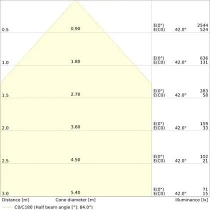 The colour code is a combination of colour rendering (CRI) and light colour (Kelvin). The first number indicates the colour rendering (1 = very poor colour rendering, 9 = maximum colour fastness). The second and third number contains the light colour. Example: the colour code 830 consists of good colour rendering (8) and warm white light (3000K). |