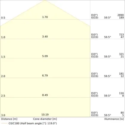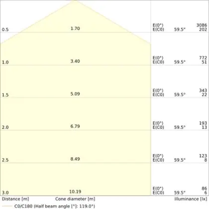 The colour code is a combination of colour rendering (CRI) and light colour (Kelvin). The first number indicates the colour rendering (1 = very poor colour rendering, 9 = maximum colour fastness). The second and third number contains the light colour. Example: the colour code 830 consists of good colour rendering (8) and warm white light (3000K). |