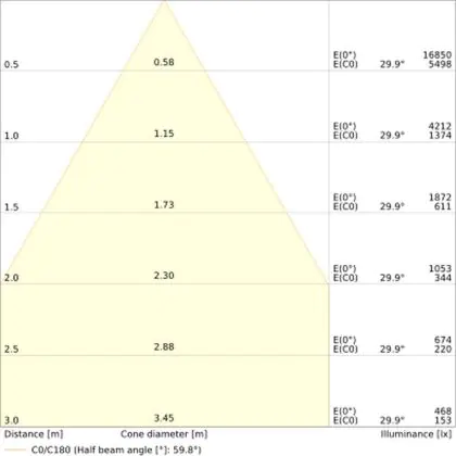 The colour code is a combination of colour rendering (CRI) and light colour (Kelvin). The first number indicates the colour rendering (1 = very poor colour rendering, 9 = maximum colour fastness). The second and third number contains the light colour. Example: the colour code 830 consists of good colour rendering (8) and warm white light (3000K). |