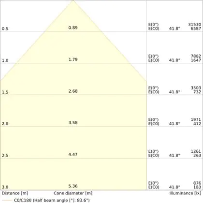 The colour code is a combination of colour rendering (CRI) and light colour (Kelvin). The first number indicates the colour rendering (1 = very poor colour rendering, 9 = maximum colour fastness). The second and third number contains the light colour. Example: the colour code 830 consists of good colour rendering (8) and warm white light (3000K). |
