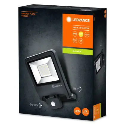 Ledvance LED Floodlight Endura Black 50W 4500lm 100D - 830 Warm White | IP44 - Motion and Light Sensor - Symmetrical