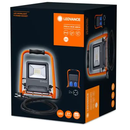 Ledvance LED Floodlight Worklight Dark Grey 30W 2700lm 110D - 840 Cool White | IP54 - 2 Power Outlets - Symmetrical