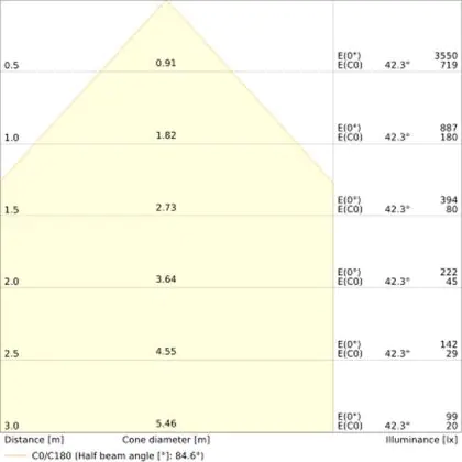 The colour code is a combination of colour rendering (CRI) and light colour (Kelvin). The first number indicates the colour rendering (1 = very poor colour rendering, 9 = maximum colour fastness). The second and third number contains the light colour. Example: the colour code 830 consists of good colour rendering (8) and warm white light (3000K). |