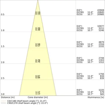 The colour code is a combination of colour rendering (CRI) and light colour (Kelvin). The first number indicates the colour rendering (1 = very poor colour rendering, 9 = maximum colour fastness). The second and third number contains the light colour. Example: the colour code 830 consists of good colour rendering (8) and warm white light (3000K). |