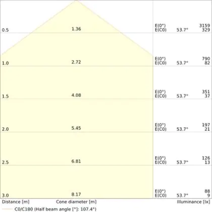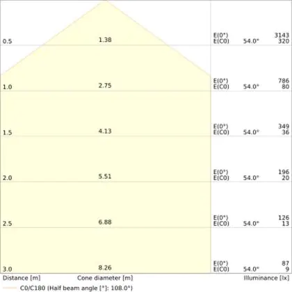 The colour code is a combination of colour rendering (CRI) and light colour (Kelvin). The first number indicates the colour rendering (1 = very poor colour rendering, 9 = maximum colour fastness). The second and third number contains the light colour. Example: the colour code 830 consists of good colour rendering (8) and warm white light (3000K). |