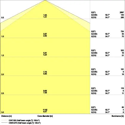 The colour code is a combination of colour rendering (CRI) and light colour (Kelvin). The first number indicates the colour rendering (1 = very poor colour rendering, 9 = maximum colour fastness). The second and third number contains the light colour. Example: the colour code 830 consists of good colour rendering (8) and warm white light (3000K). |