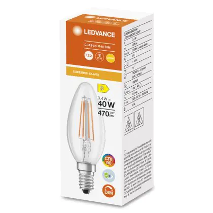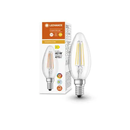 Ledvance Superior Classic LED E14 Candle Filament Clear 3.4W 470lm - 927 Extra Warm White | Dimmable - Best Colour Rendering