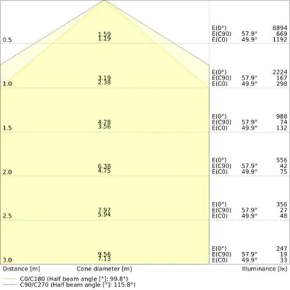 The colour code is a combination of colour rendering (CRI) and light colour (Kelvin). The first number indicates the colour rendering (1 = very poor colour rendering, 9 = maximum colour fastness). The second and third number contains the light colour. Example: the colour code 830 consists of good colour rendering (8) and warm white light (3000K). |