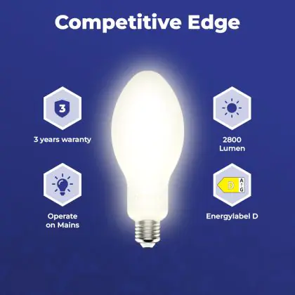 Noxion LED HID Elliptical E27 18W 2800lm - 830 Warm White | Replaces 50W