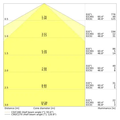 The number of lumens (lm) is the light output of a light source. The higher the number of lumens, the more light the light source emits. The wattage and the number of lumens are not connected to each other. An LED lamp with a low wattage can have a higher number of lumens than a conventional lamp with a high wattage.
