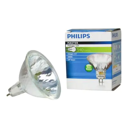 Philips MASTERLine ES correspond to dichroic halogen lamps equipped with double-ended burners with xenon gas filled infrared low voltage coating with an axial position filament within a capsule.